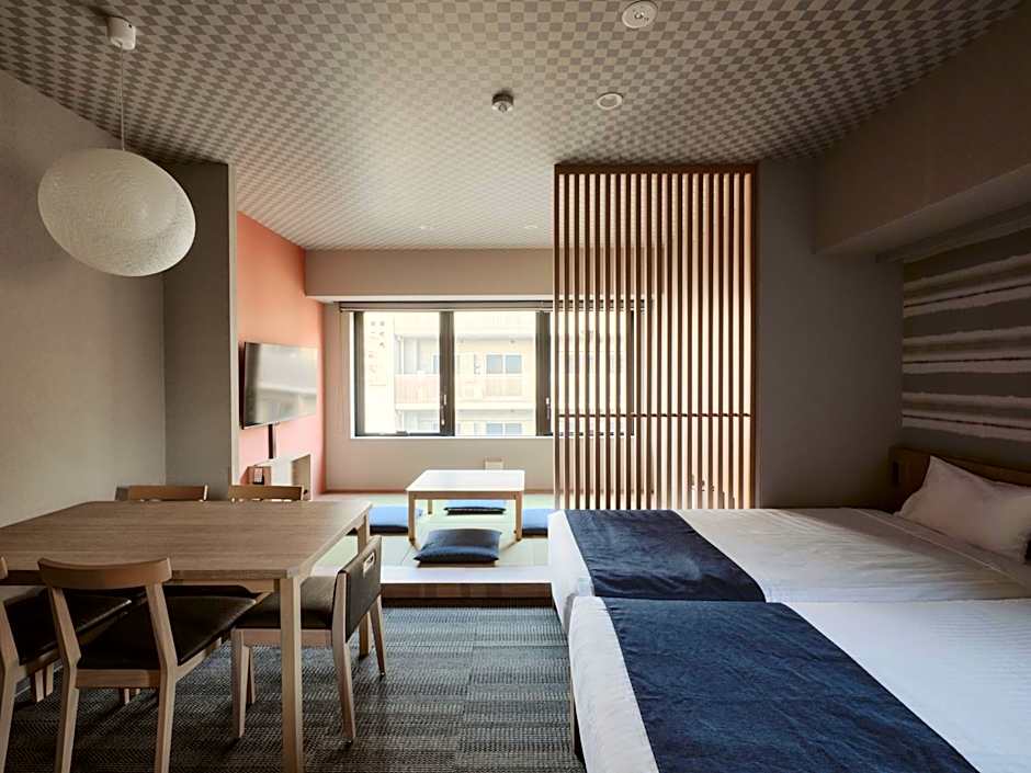 The spacious double room offers air conditioning, a washing machine, as well as a private bathroom featuring a bath and a shower. In the well-fitted kitchen, guests will find a stovetop, a refrigerator, kitchenware and a microwave. The double room provides tatami, a dining area, a wardrobe, a safe deposit box and a flat-screen TV. The unit offers 1 bed.